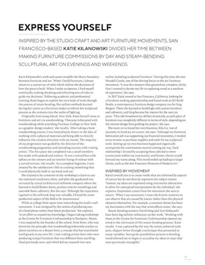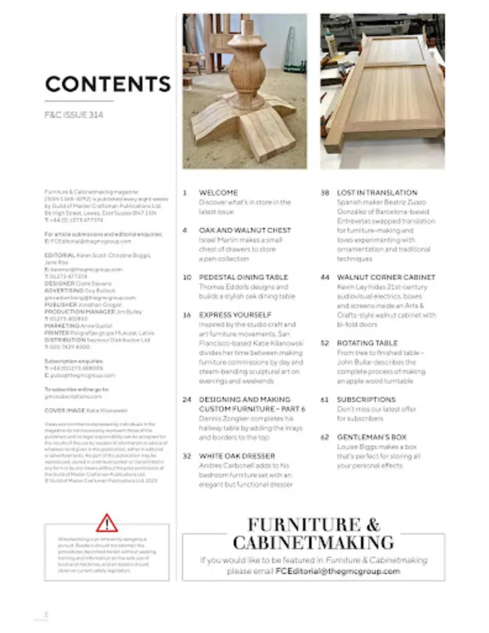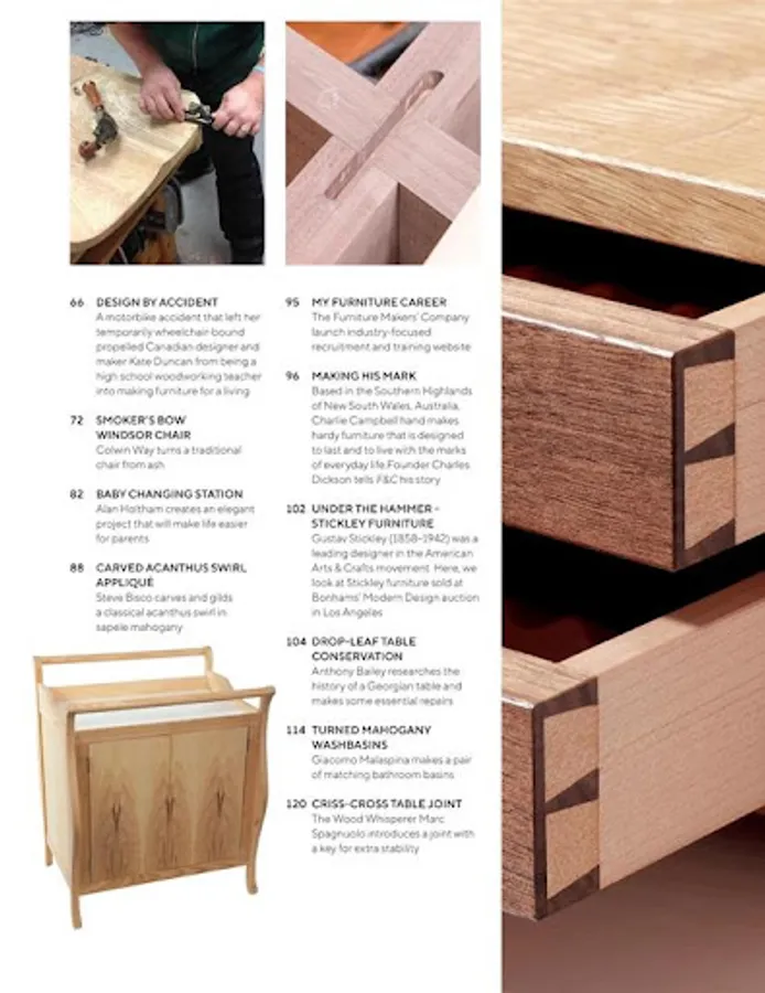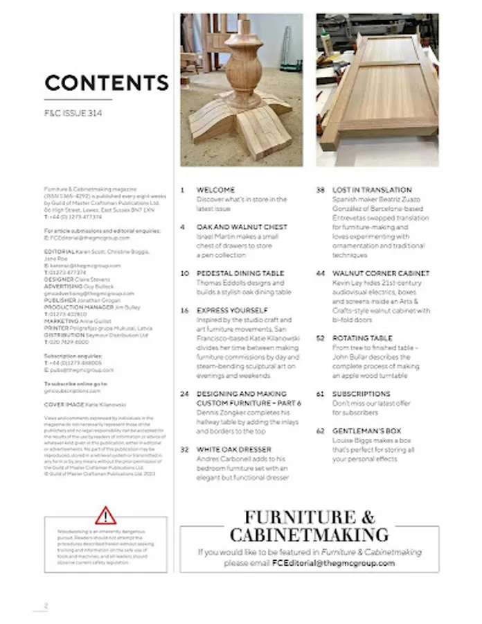 Furniture & Cabinet Making is the UK’s only magazine dedicated to the finer aspects of contemporary and classic woodwork. With an emphasis on quality, the magazine aims to promote excellence in furniture making by showcasing modern and classic furniture design and the associated techniques. Topical features, reports of major shows, plus important industry news and reliable reviews of machine tools and hand tools complete the mix of content that makes F&C an essential read for the furniture maker.