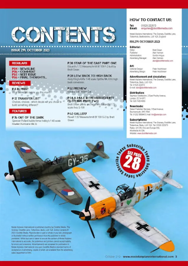 Always packed with the latest kit previews, full kit builds and how-to features Model Airplane sets the standard for modelling excellence and photography. Every issue has superb kit builds with how-to sections to help improve your modelling skills. The very latest releases and industry insider news on accessories and upcoming releases keep the reader up to date with the latest info.