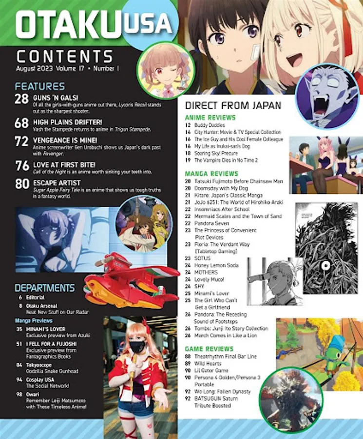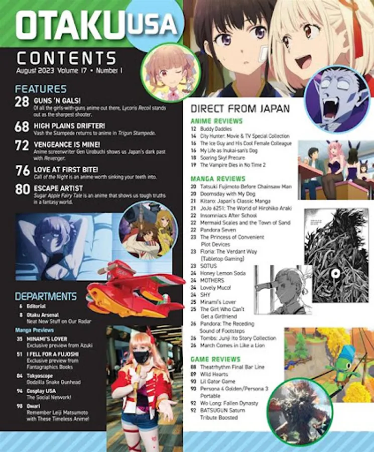 Otaku USA Magazine features comprehensive coverage of manga, anime video games and Japanese pop culture written from an American point of view. Each issue has 32 pages of the hottest manga previews from the top publishers. Published Bi-Monthly each issue has over 100 pages of the latest, coolest anime, manga and Jpop!