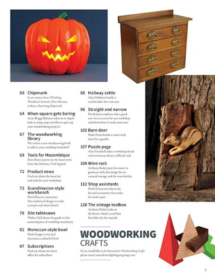 Woodworking Crafts brings you a breadth of knowledge and information which cannot be found in any other woodworking publication on the market. Whether you are a first time woodworker or experienced, there will always be something for you. It has lots of technique articles, features and projects across a wide range of woodworking interests from green woodworking to woodturning, craft projects, upcycling, learnt hand skills, powertool use, the green environment and much more. It is approachable and easy to understand, educational and fun. If you have a thirst for knowledge this is a magazine you will want to keep picking up and reading, a magazine you’ll want to keep. Formally known as Woodworking Plans & Projects.