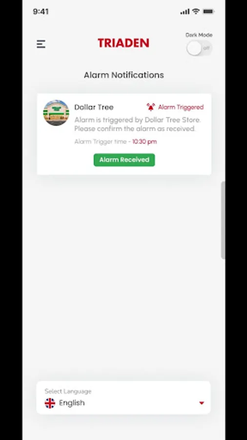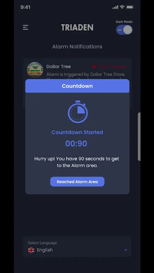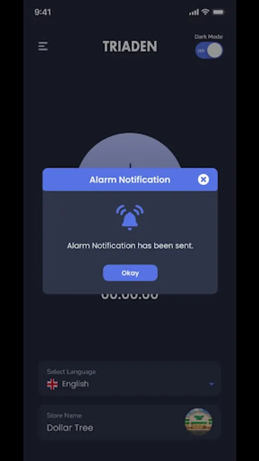 Triaden app is an alarm app with two users store and a guard. The store will trigger the alarm. The notification is generated for the guard. The guard accepts the notification and has to reach the store in 90 seconds. The store confirms when the guard arrives and the alarm is turned off.