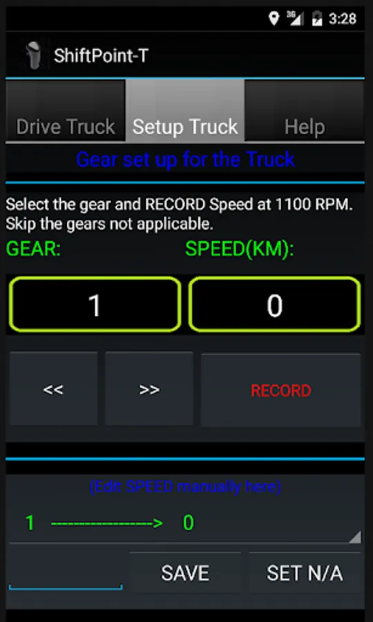 A one time setup makes this app understand the shifting behaviour of your truck and you can use it for ever.