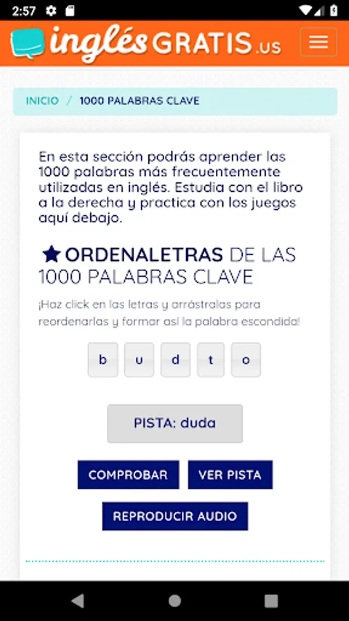 This application will allow you to learn and practice English 100% free through a variety of content such as videos, exercises, audios, interactive games ...