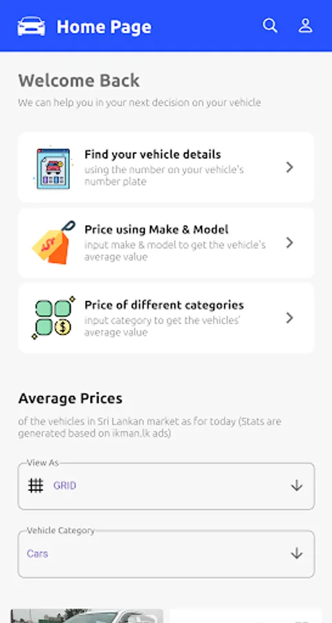 We are using ikman.lk to get the market price of the vehicle and using it to calculate the average vehicle price within that time period. You can filter vehicles by their category, model and their price.