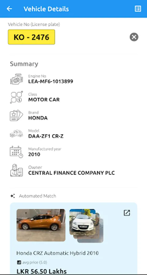 Another amazing feature that we provide is getting vehicle details by using the vehicle number. This not only gives you the registration details also provide the market value of that vehicle.