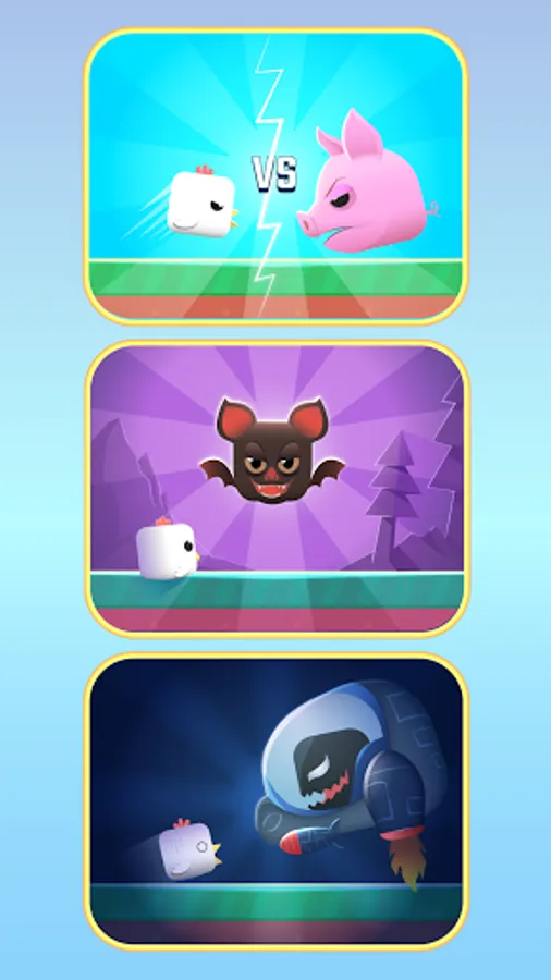 Unlock new secret levels with different gameplay. For example, try to win a battle where you need to dodge the enemy using square eggs and shooting skills. Try to predict where the angry monster wants to hit you and dodge him.