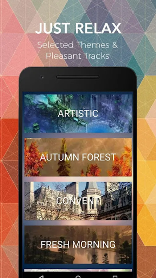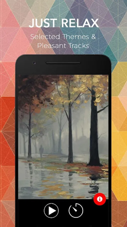 Close your eyes and reach new relax levels. Improve your health. The App has picturesque wallpapers when the music is played and you can relax by setting a timer.