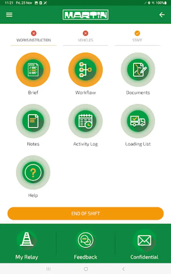 Application used to track and manage scheduled work instructions. Including briefings, checklists and signatures, job workflow tasks, staff and vehicle management and also the ability to submit the shift results back to the main website.