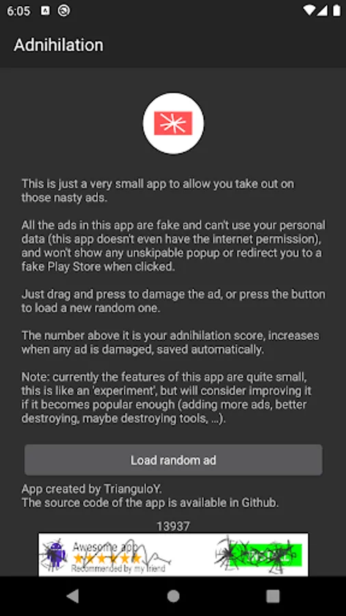 The source code is available on Github: https://github.com/TrianguloY/Adnihilation