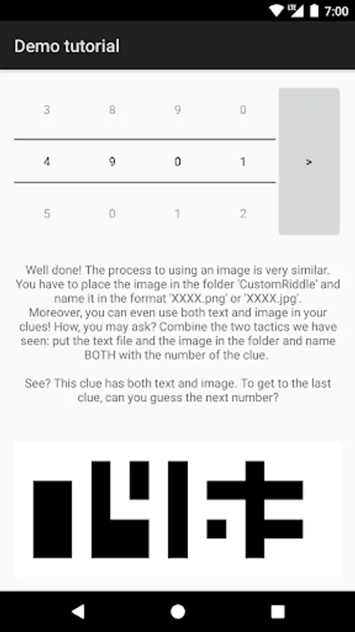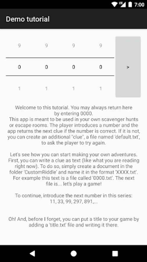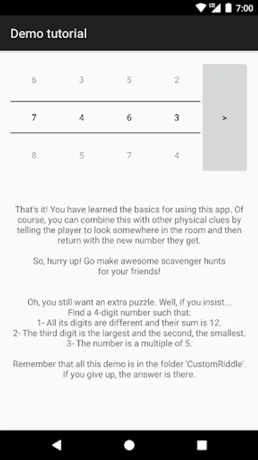 This app is a tool to create your own riddles/escape rooms (those with relations number->text/image) to play at home with friends or anywhere else.