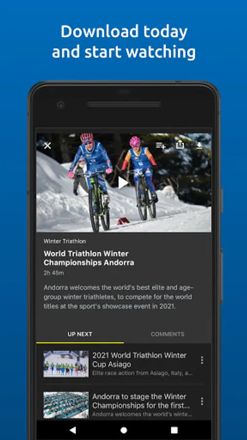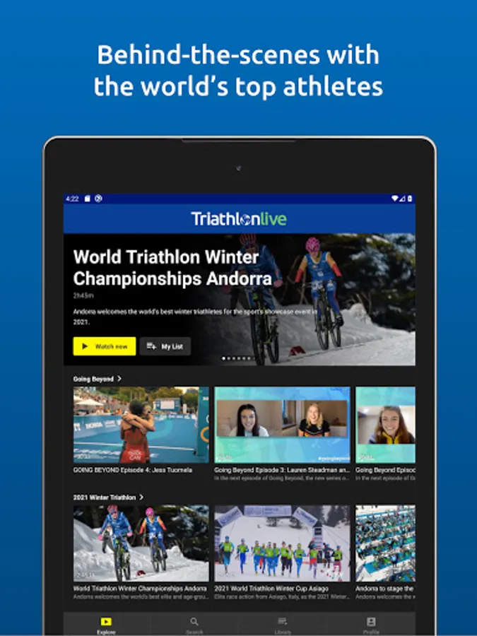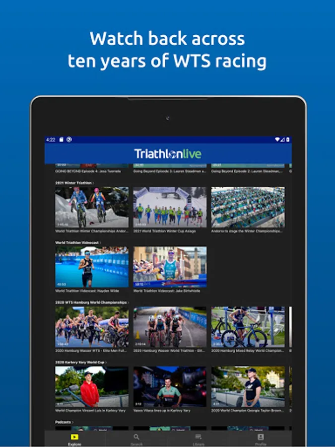 Get closer to the action and watch your favourite races live and on-demand from the World Triathlon Series (WTS), ITU World Cups, Super League Triathlon and more.