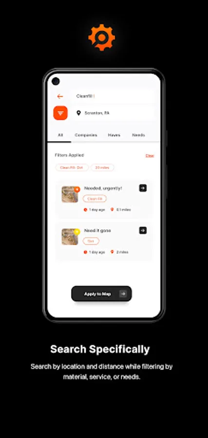 - Post or find clean fill, equipment, specialized needs, contractors, and more all on a searchable user friendly map and list.