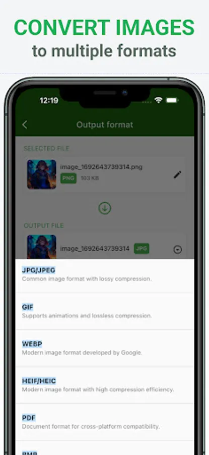 📂 **File Management**: Image Converter includes a built-in file manager, allowing you to organize your converted images effortlessly. Sort, view, and manage your files conveniently.