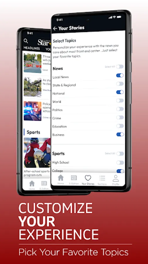 * Your Stories – personalize your experience by selecting the local news topics that matter most to you