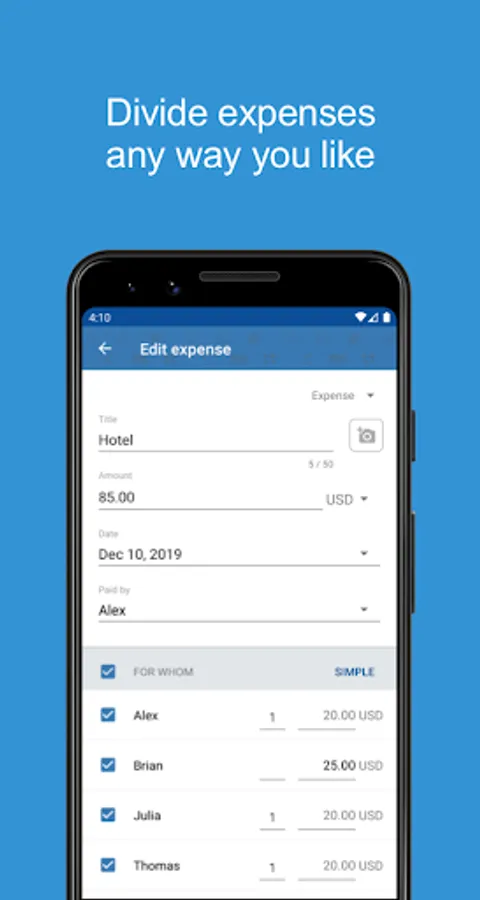 ★ Split expenses unevenly: great if you're traveling with kids for example.