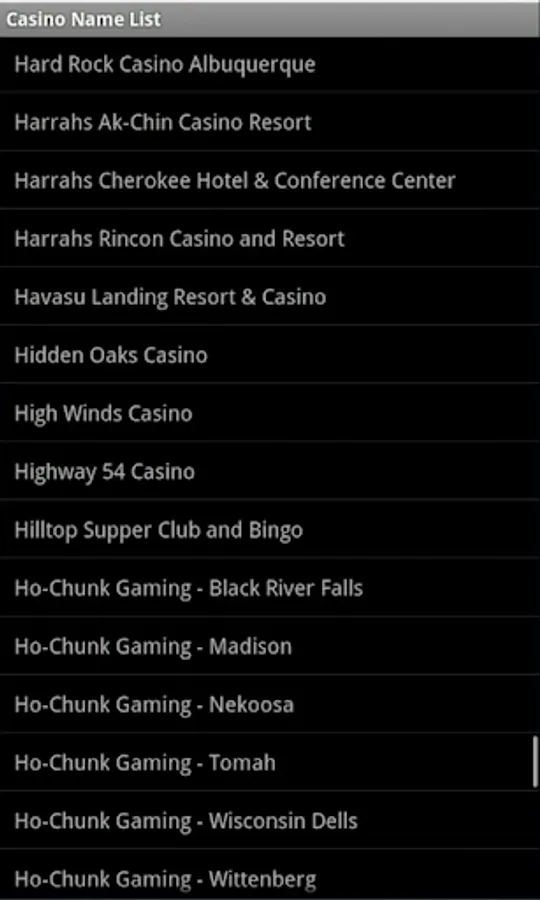 Our application also provides several address searching options that allows the user to easily narrow their search in finding any Tribal Casino. The search feature is very simple and easy to use.