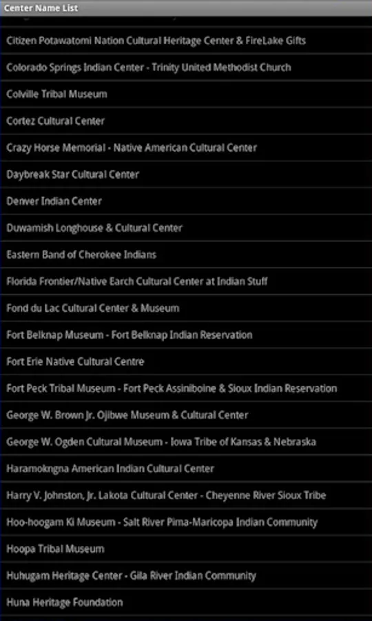 This is the ultimate tribal cultural center directory for Indian Country! Tribal Cultural Centers is an Android application that contains data contact information on native indian centers museums in the United States and Canada. At a touch of a finger, you can easily find address, phone and fax numbers for many tribal centers across the country. The application also has mapping capabilities, which can help you locate any tribal center.