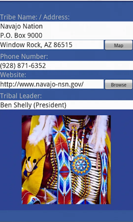 Tribal Nations is an Android application that contains contact information for every federally recognized tribal nation in the United States. At a touch of a finger, you can easily find the address, phone number, and website for 589 tribes across the country. Best of all, you can learn who serves as the current sitting Chairperson, Governor, President or CEO of each nation. The application also has map-route capabilities, which can help you drive to tribal headquarters, if you are interested in a road trip!