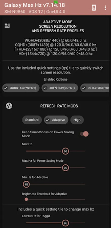 - Adaptive refresh rate mod on devices with non-stock adaptive refresh rate mode