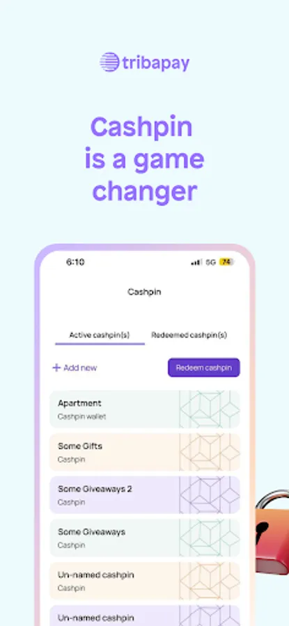 2. Lock your money in a Cashpin™️; so that even if your phone is stolen, your money is safe. You can even use it to transfer money to another person.