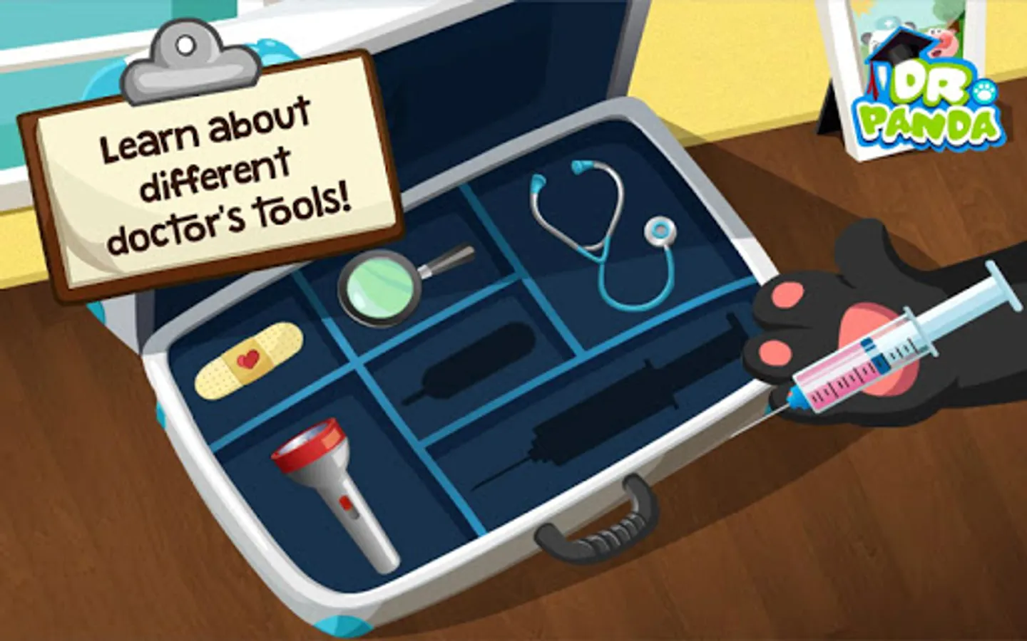 Don’t forget to sort out Dr. Panda’s medical equipment as so many different treatments needs to be done: Measure blood pressure, apply ointment, adjust broken bones, retrieve swallowed items, laugh while delivering injections, cure stomach, eyes, ears, mouth and teeth.