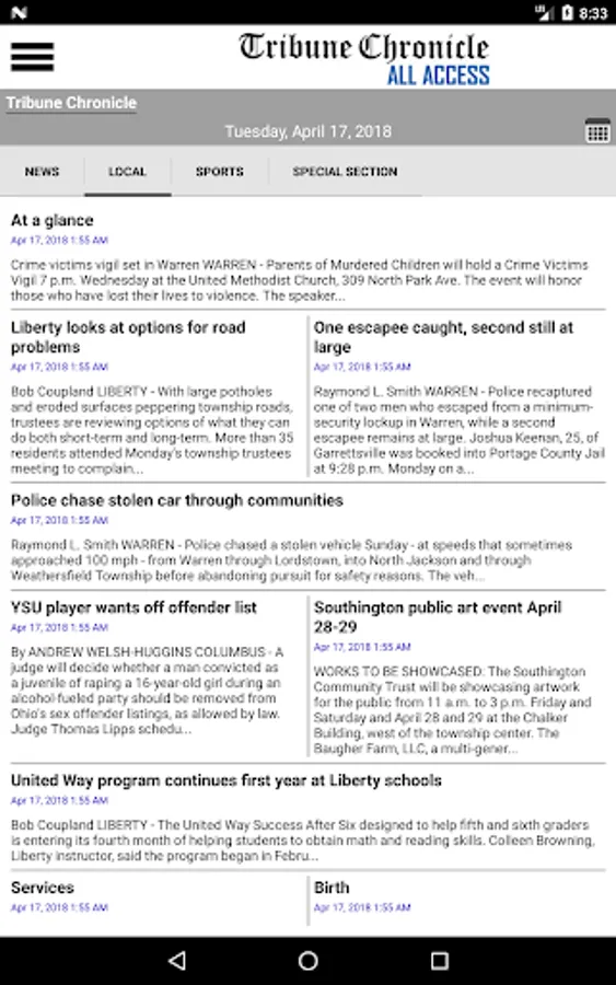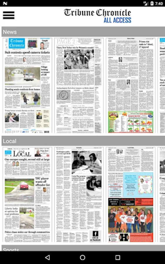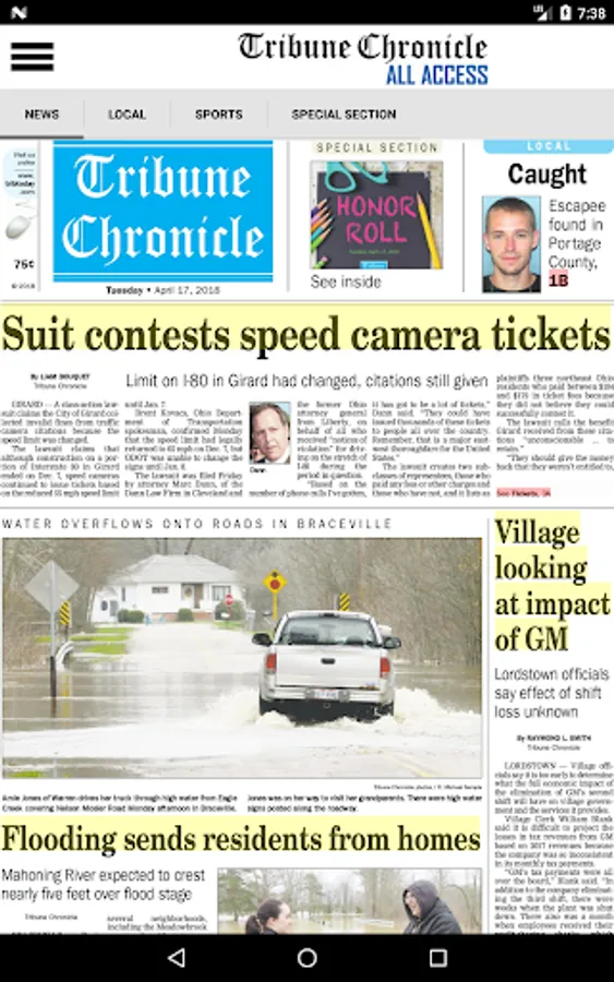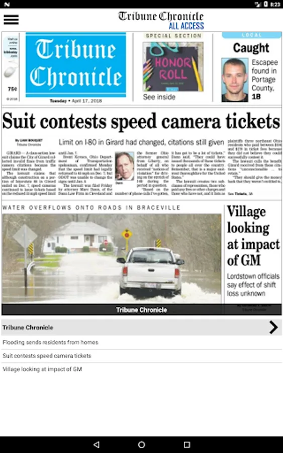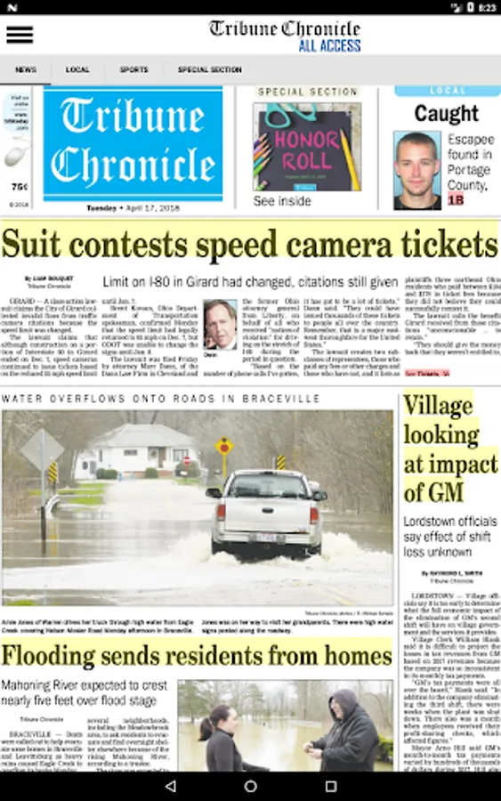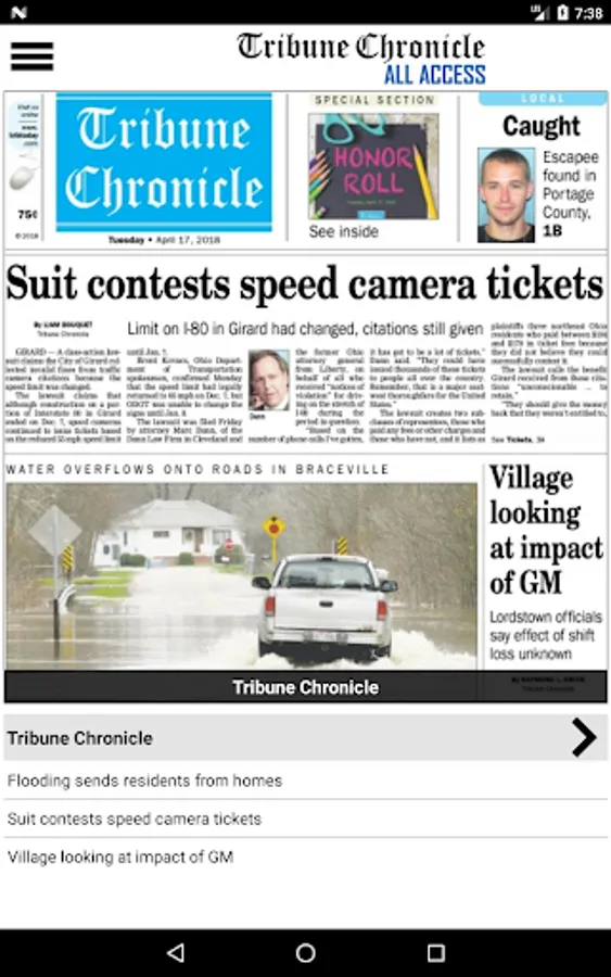 Stay on top of news from Warren and surrounding areas by receiving the full print version of the Tribune Chronicle on your Android device. Every page of every edition is delivered to your device. The Tribune Chronicle is the best source for local and national news, sports, weather and features in the Warren and Trumbull County area. Download the app to view the printed pages of the newspaper or read headlines and stories along with related photos in a built-in story viewer.