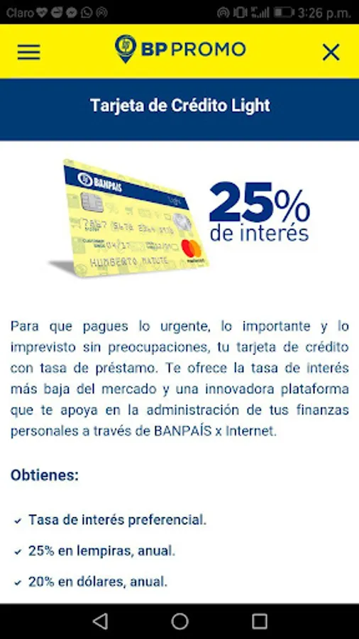 - Request a BANPAÍS Credit Card.