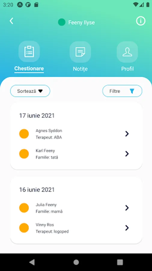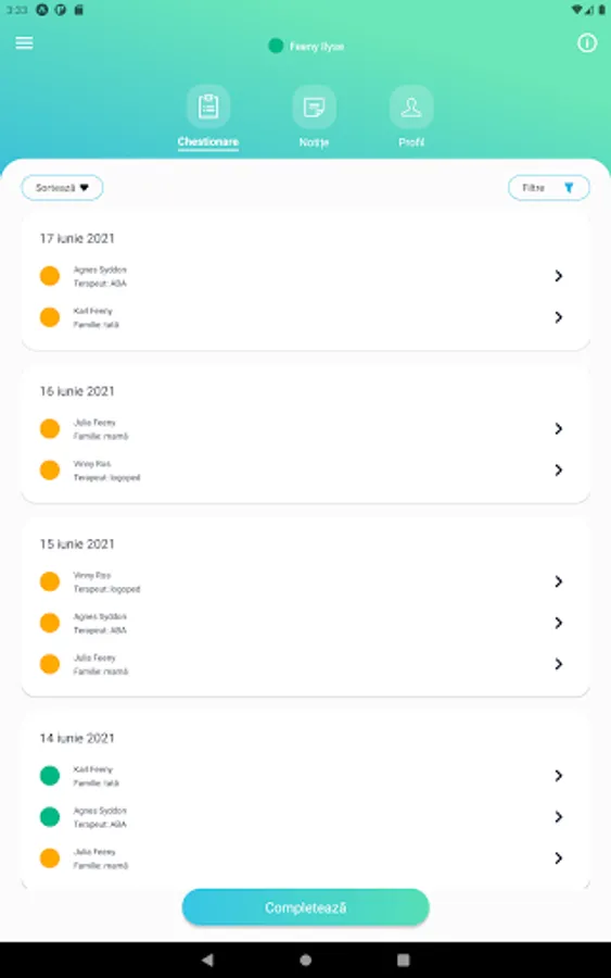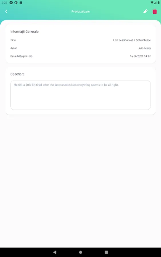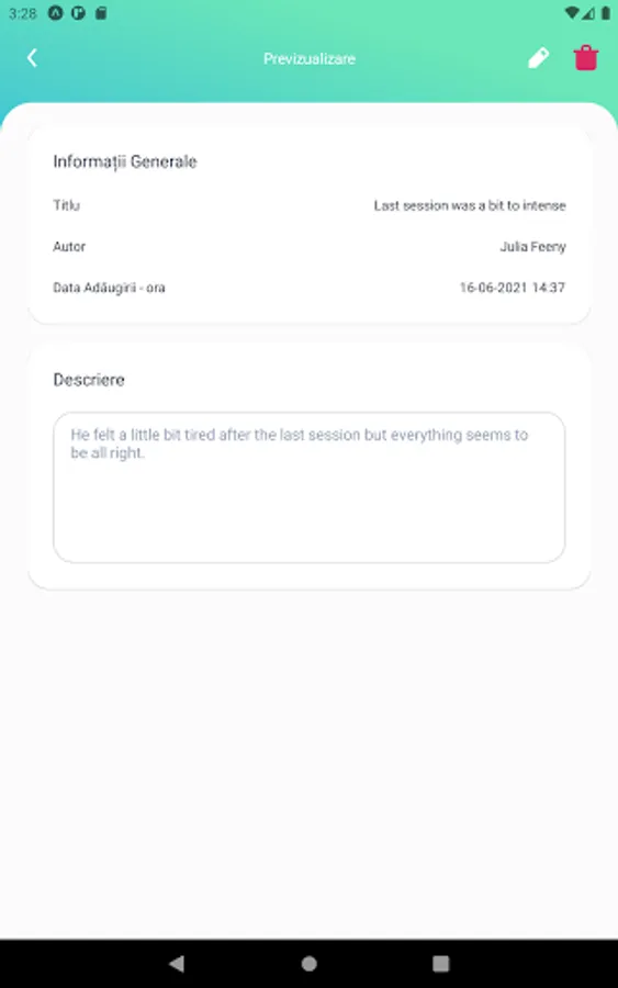For a detailed monitoring of behavior and progress, the TO application provides users with access to a history of completed questionnaires and notes, as well as the ability to delete or modify an already completed note.