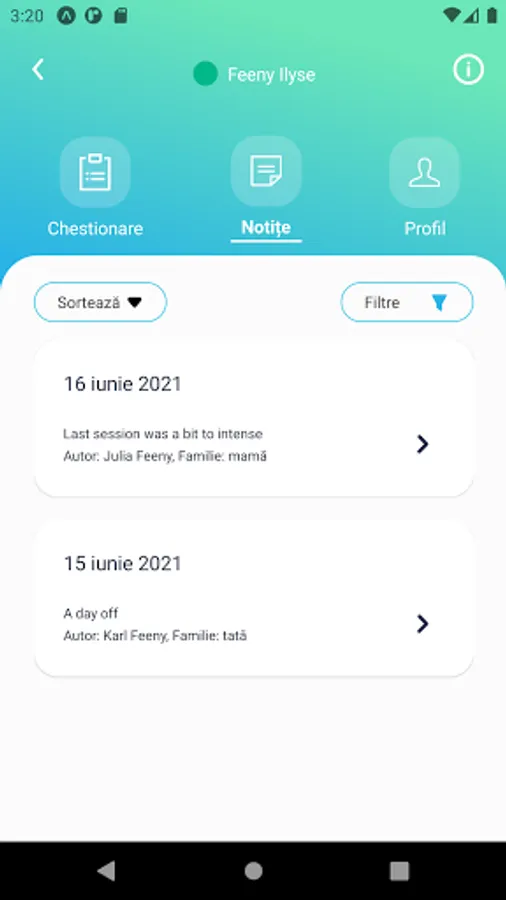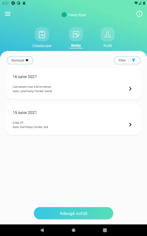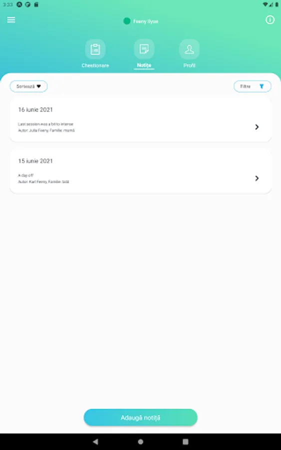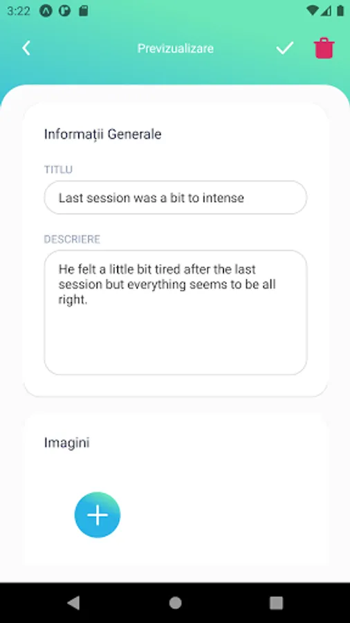 For a complete experience the application provides users with the opportunity to add notes related to the physical and mental health of their members, in the form of text or media (photos).