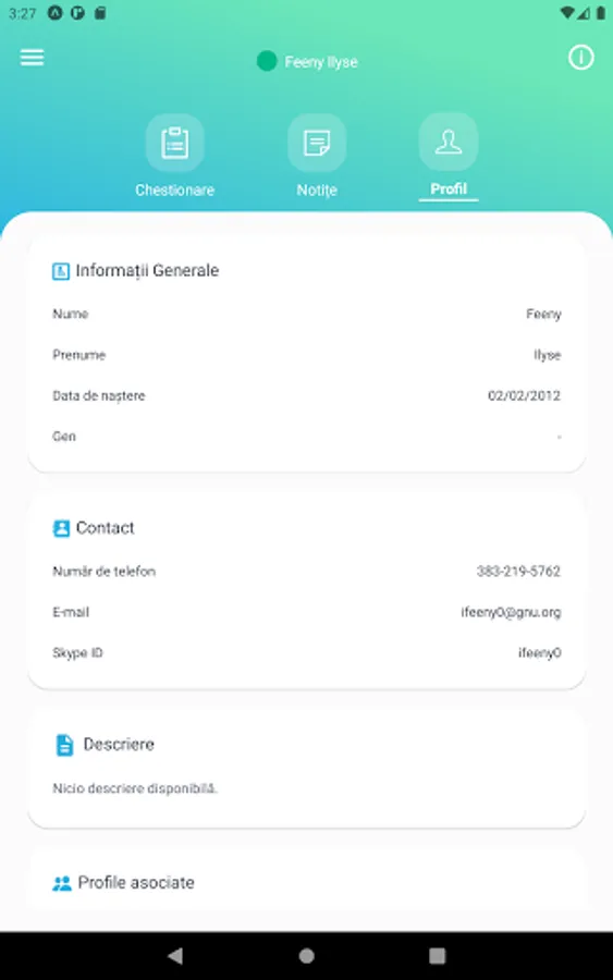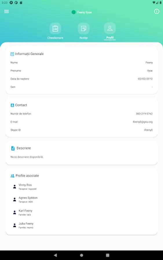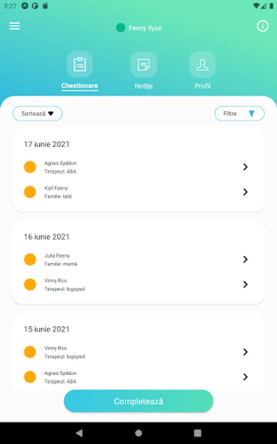 The application gives users the ability to manage multiple associated accounts at the same time, so users can check the data associated with each member, complete questionnaires and add custom notes for each individual member.