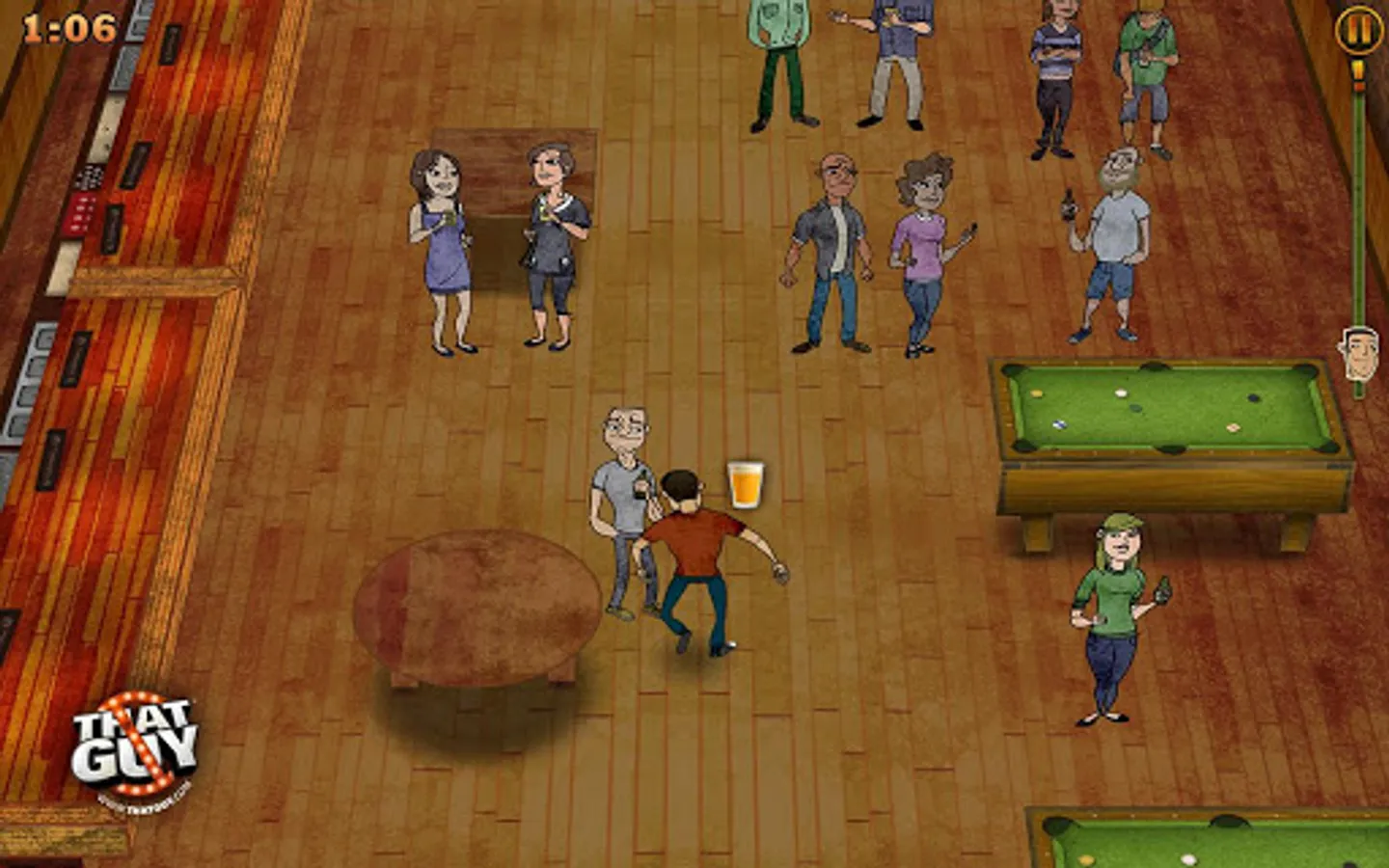 Race the clock to steer your way through four mazes of obnoxious drunks and slippery situations, without getting too wasted yourself.