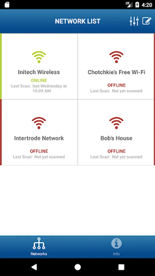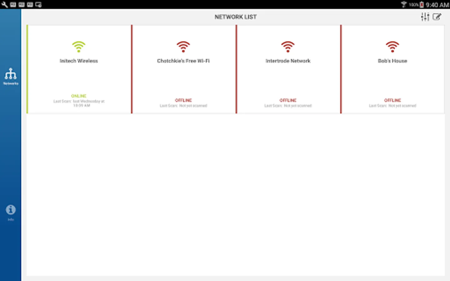 • Keeps scan history to track 'offline' devices that were previously detected