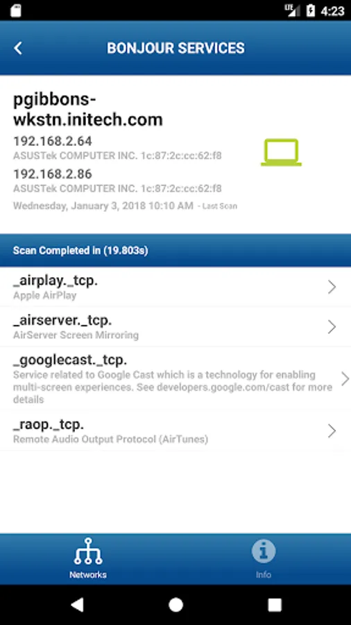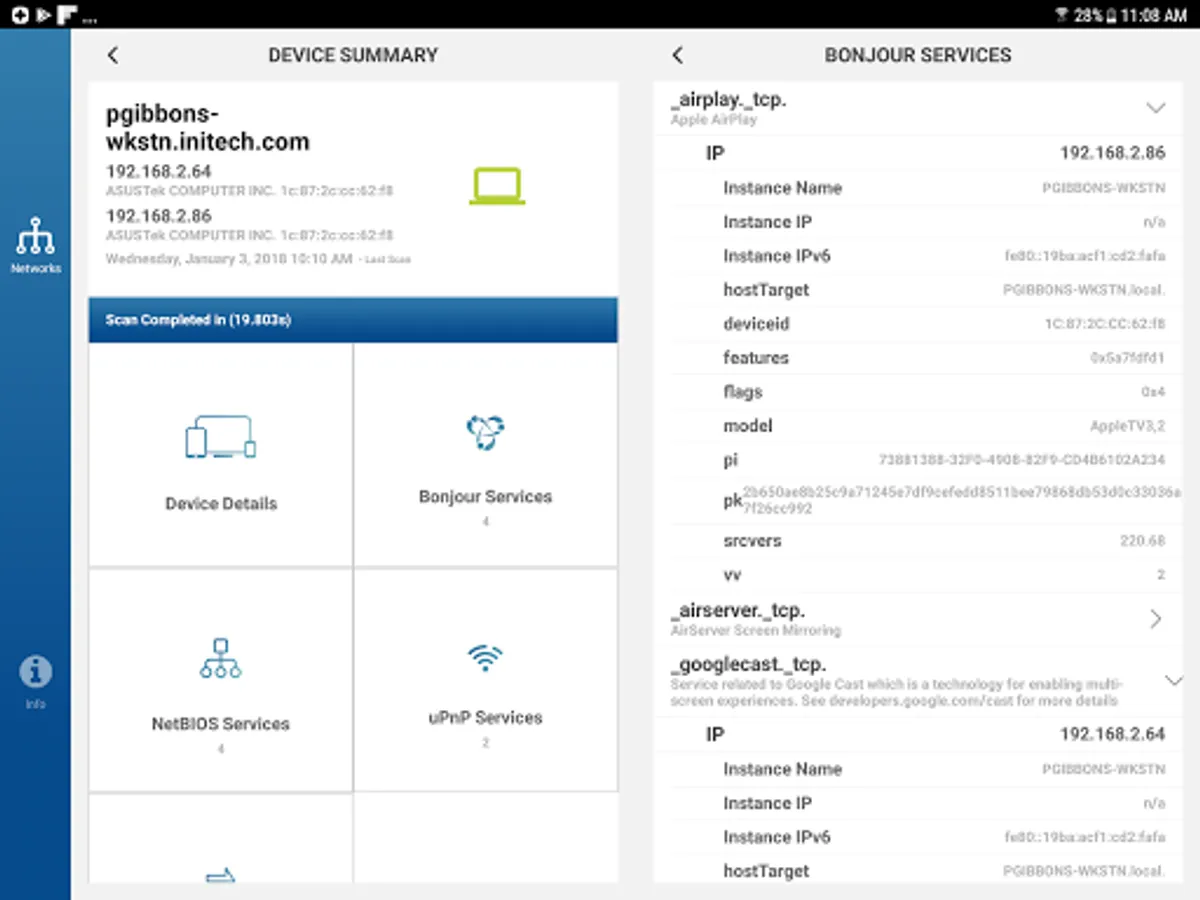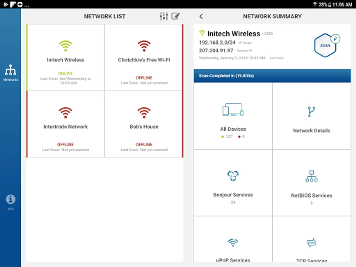 With a powerful modern UI, Percept enables you to easily view the details of each device and service. It even keeps a history of all of your network scans so that you can review the details even when you are not connected.