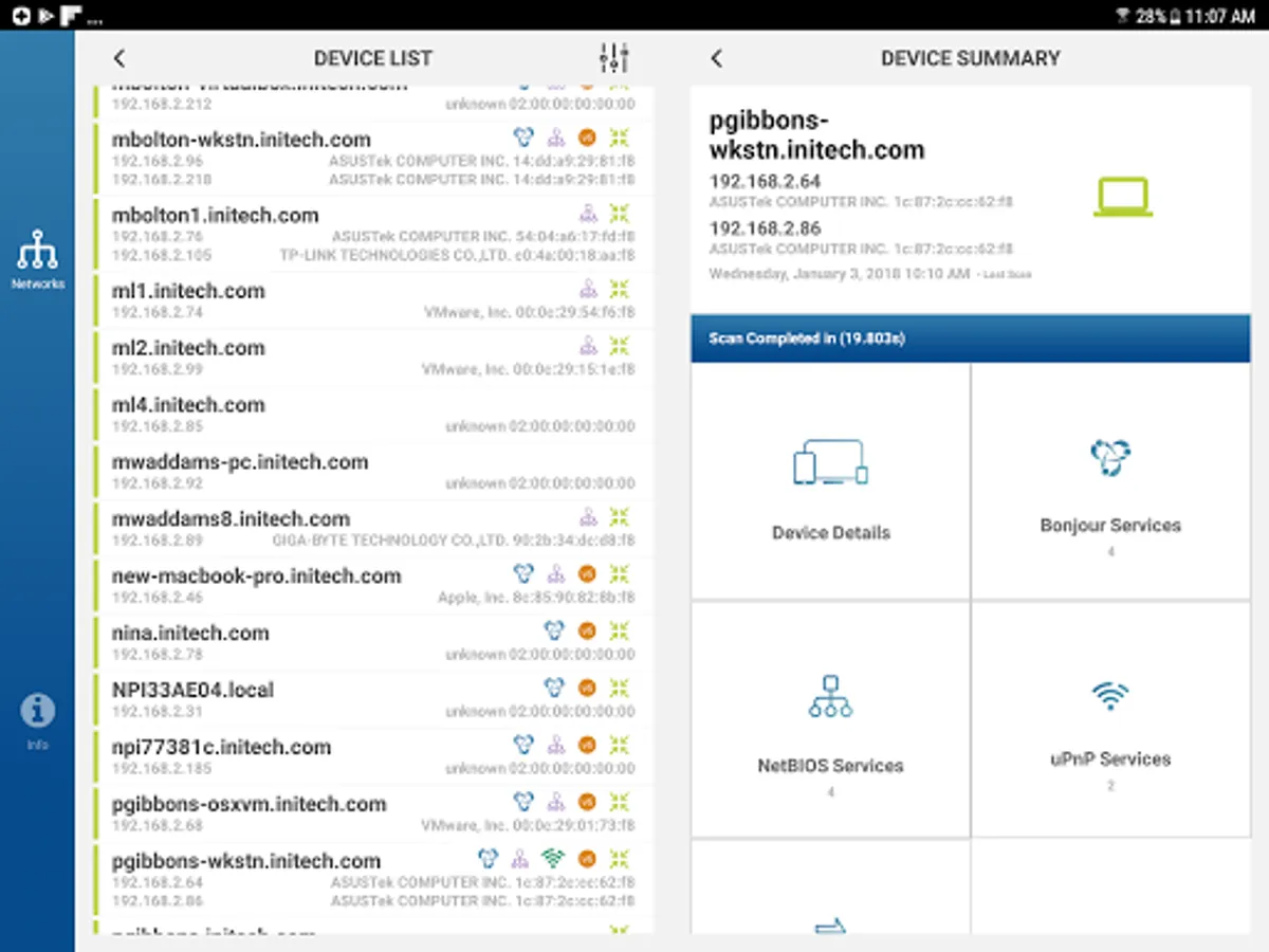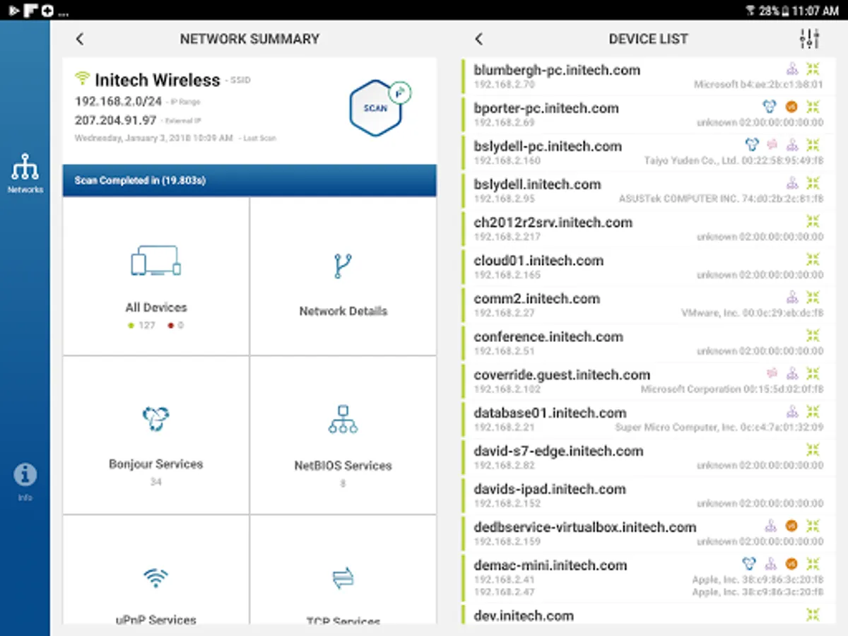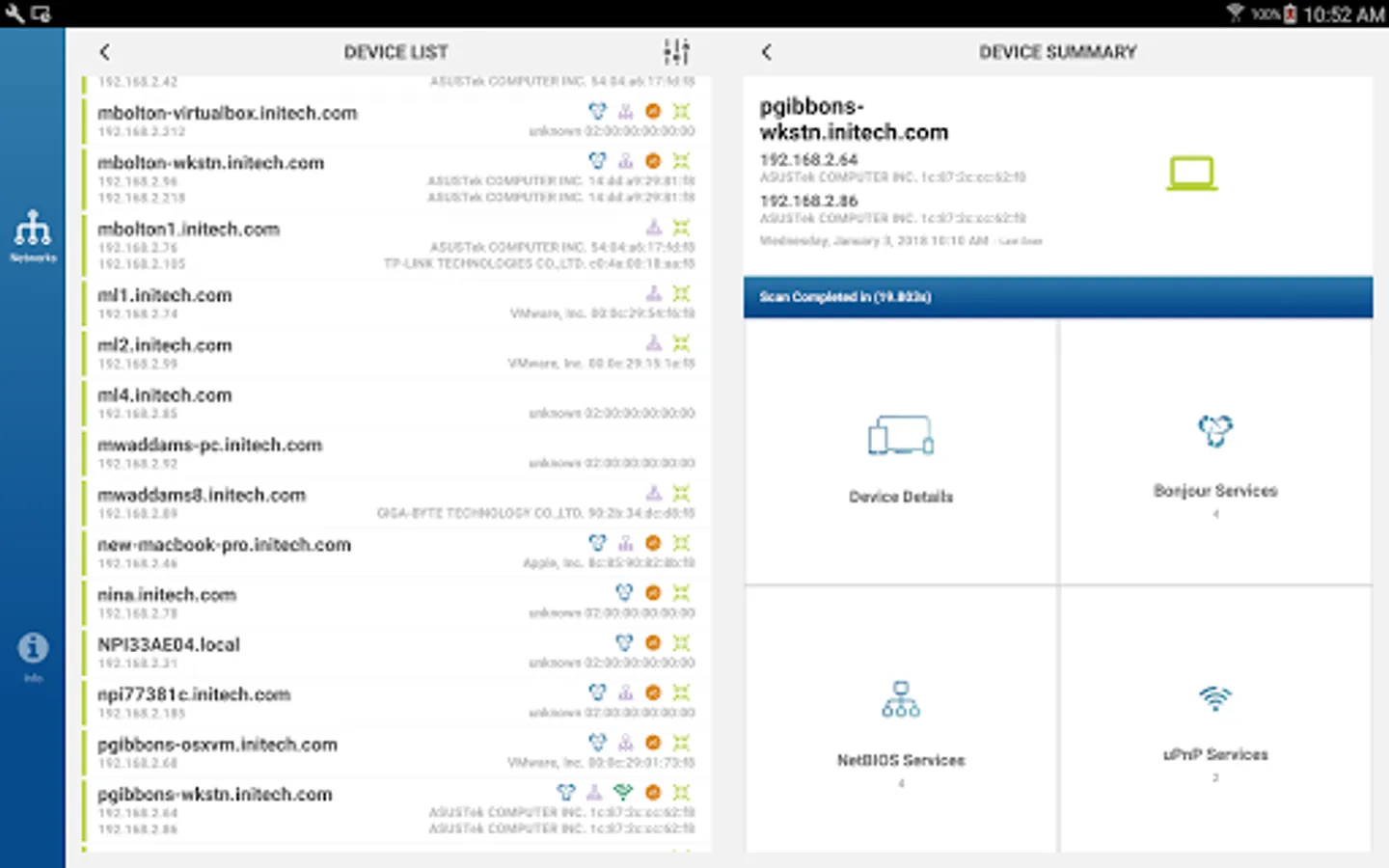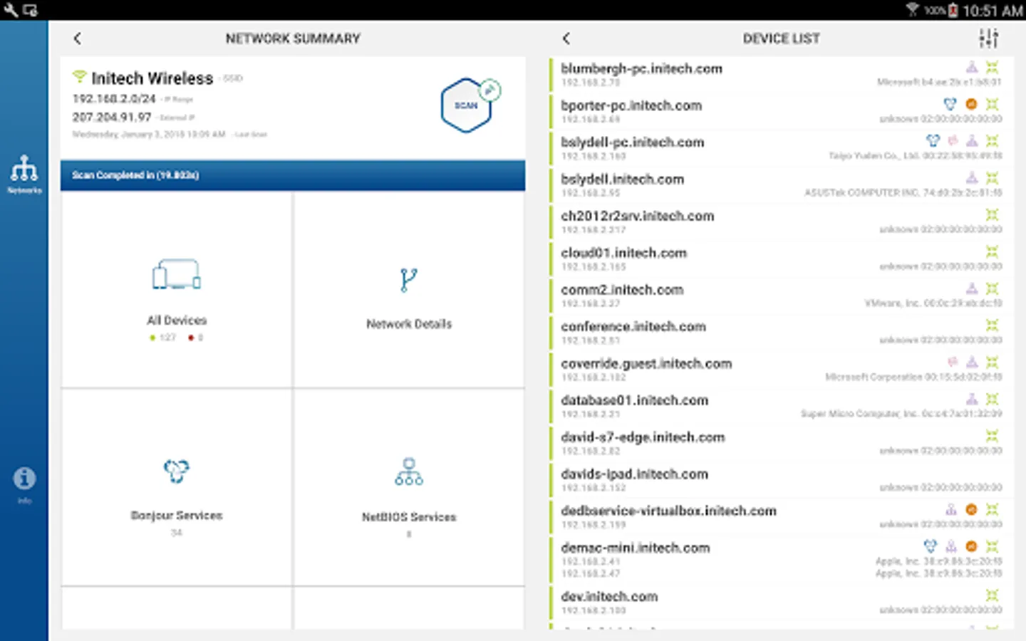 • View device names, including DNS, NetBIOS, mDNS, Bonjour