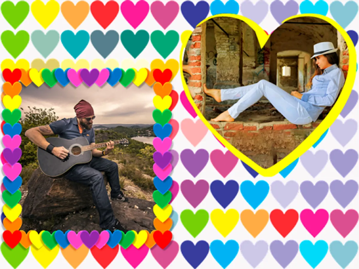 With the application of double frames Frames Love Romantic, you will have a variety of frames to choose from, and you can also tune them with all the effects, stickers and texts included in the application.