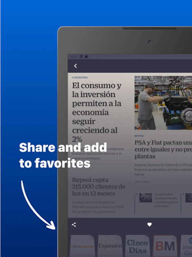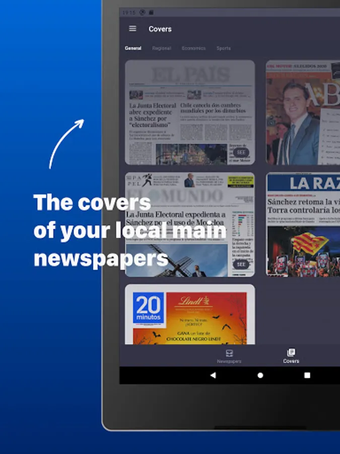 Newspapers are categorized and grouped for better navigation. In this way, you can read la razón and, from this one, you can move to other newspapers of the same category (la información or el independiente) by moving up the lower menu. You are going to be able to compare how different newspapers analyze the same news. You can also find important regional newspapers such as el confidencial or el correo in the "Regional" category. We also have financial and political sections (you can read these news at las provincias or expansión) and, sports fans have sport and estadio deportivo. Fashion magazines could not be missing to be updated on the latest trends, in hola, elle and antena 3. You can read everything about with celebrities. Additionally for your convenience you can look through many other newspapers in each section.