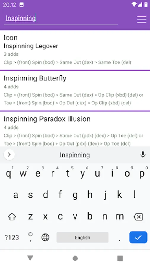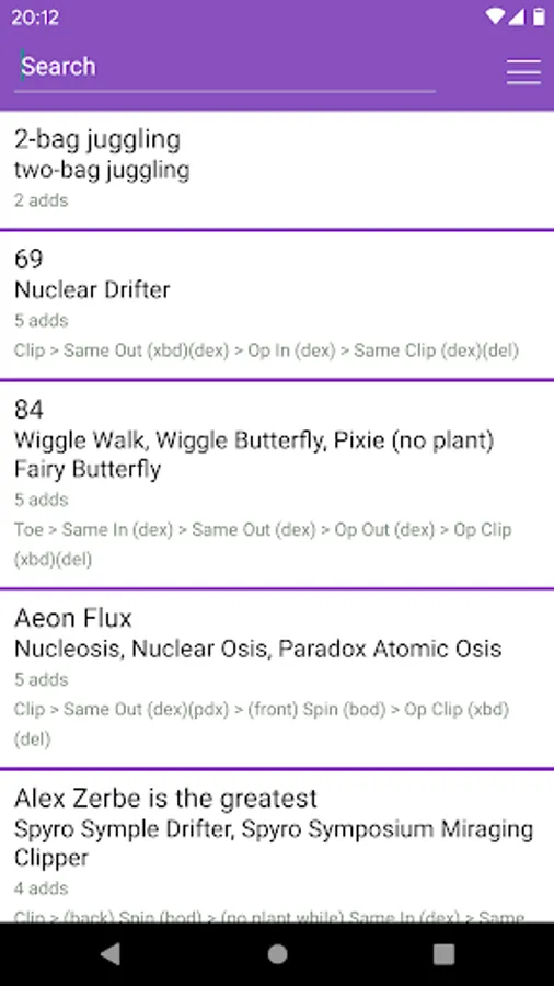 Footbag Dictionary can filter tricks by component. Want to see all tricks with a certain component? Start searching for that component. See the screenshots for an example.