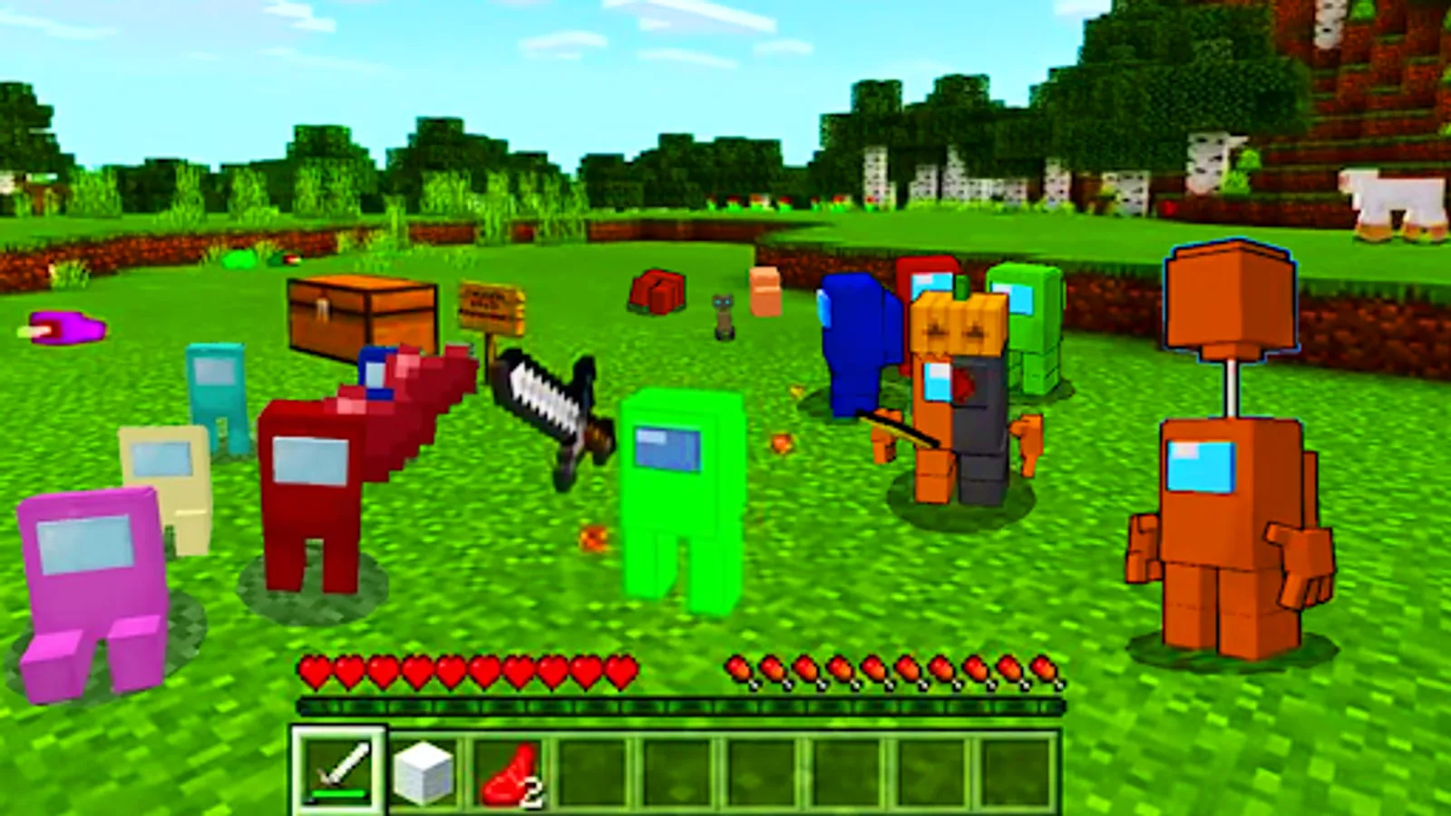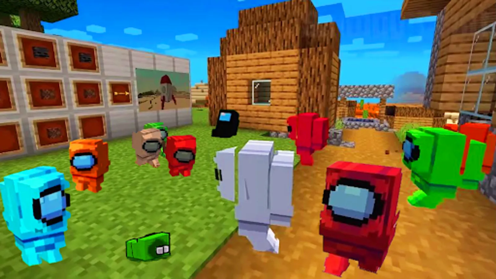 Many minecraft players are very fond of fun and easy amoung adventures in mcpe. One of the most talked about games is now available in your minecraft world! With this mcpe mod, characters from the game Among Us are added to your Minecraft PE world, where you need to find an amos impostor, you can also take part in the game yourself using the amongus skin of a team member. The main task of the traitor is to destroy the maximum number of peaceful players, and prevent the crew members from completing all the tasks. Crew members can be tamed using a Bone. Thus, you can assemble a amos team and search for impostors together. Impostors are aggressive and bind players and crew amongus members.