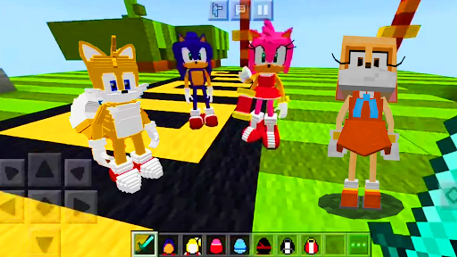 Somic, Tails and Amy Rose are almost always friendly. Also, Krim the Rabbit, Maria Robotnik, shadow and metal sonic3, robots and some weapons will be added to the run game. So, get started - old sega trip in minecraft, a fun run begins.