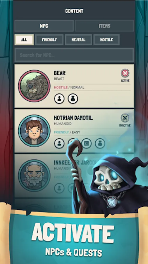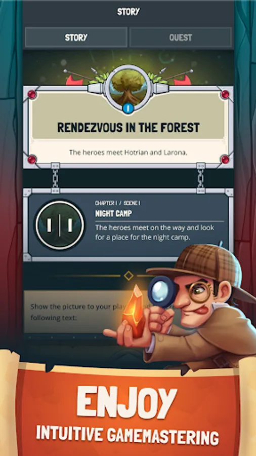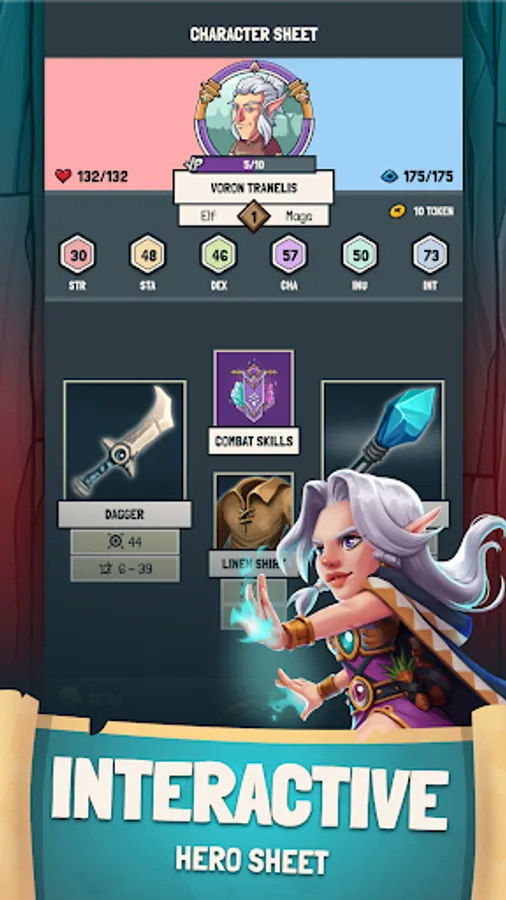Improve your attributes, skills and attacks. Collect and send weapons, items or armor to your companions! Receive your check outcomes in an instant. As Game Master you view players’ character sheets and regulate their health points and other stats - No more taking tons of notes.