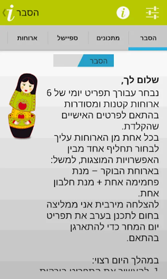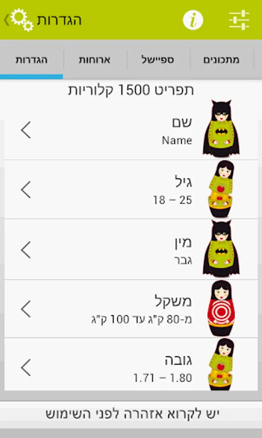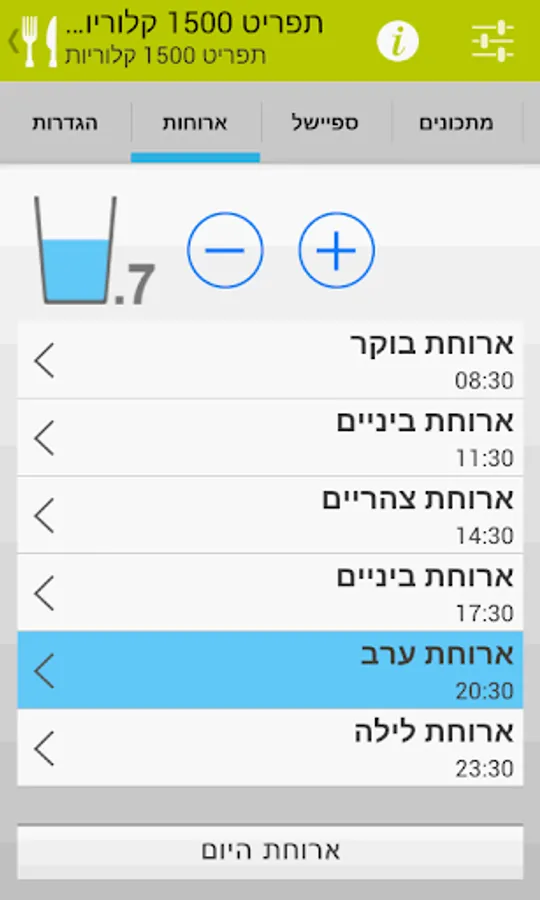 The app will provide you alerts by mealtimes, and to choose the right dishes from a menu tailored to your diet in order to reach the target weight.
