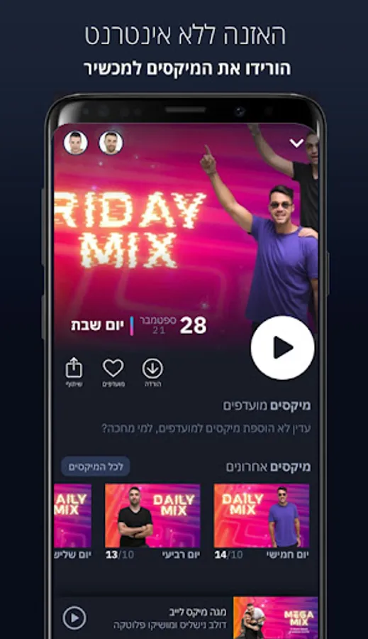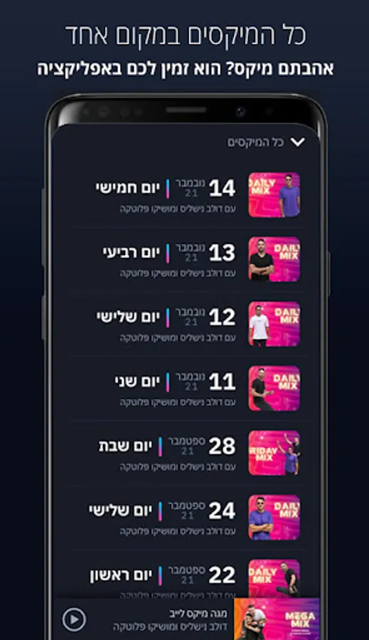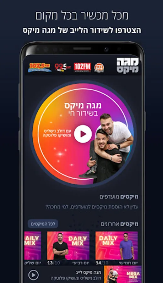 The program 'Mega Mix' is broadcast on Radio Haifa, Radio 99.5 Hot Fire, Radio Tel Aviv and Radio Darom