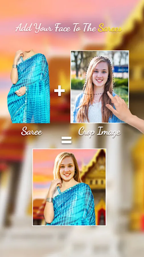 Every woman looks beautiful in Indian saree outfits. You can change your beautiful look in to saree by using this editor and mesmerize your friends and families. This App will help you to make decision in selecting the right saree for yourself. Over 30+ different styles saree designs for you to get beautiness with this editor. Various styles of saree collections such as Cotton Sarees, Net, Silk Sarees, Banarasi and many more.