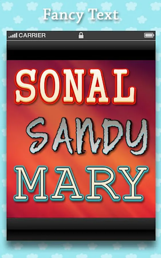 ☞ This Name Editor provides color background and patterns background for you and also provides a variety of texture pattern to make your text more wonderful arts.