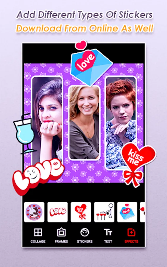 Create photo collages with best collection of styles of layouts in few seconds. Customize with borders, backgrounds, stickers and decorate with stylish patterns in this photo collage.