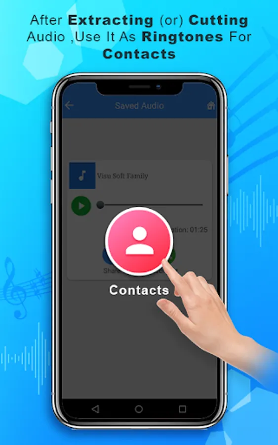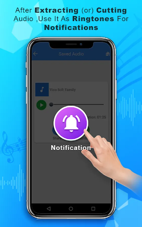 Once you finish the editing or Extraction from the video you can set it as ringtone, or contact tone or notifications tone.