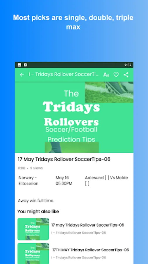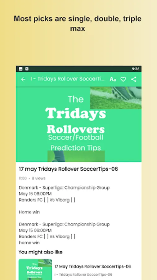 Tridays Rollover SoccerTips-06 is a guiding tool for football predictions that run for three day max.