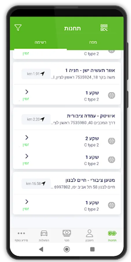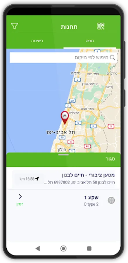 למצוא – ניתן למצוא את תחנת טעינה הקרובה אליך באמצעות מפה.