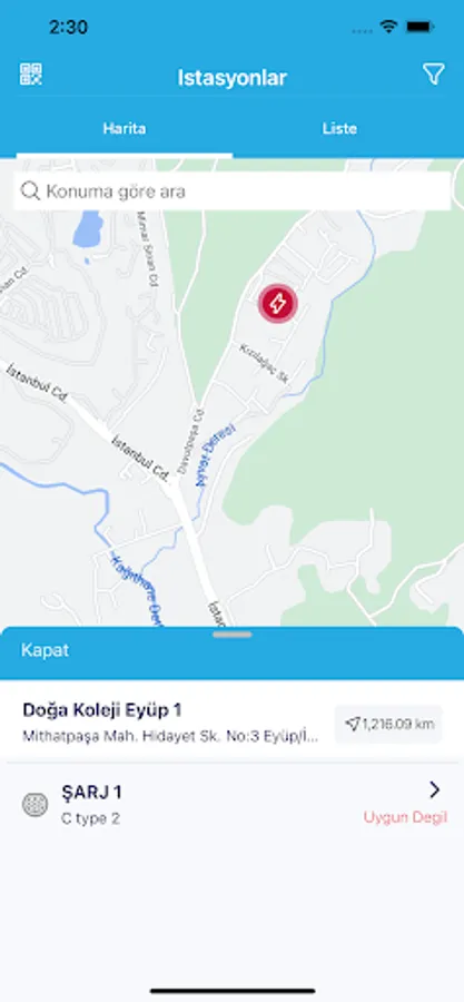 Charging Station Display: You can view the charging stations near you and check their availability.