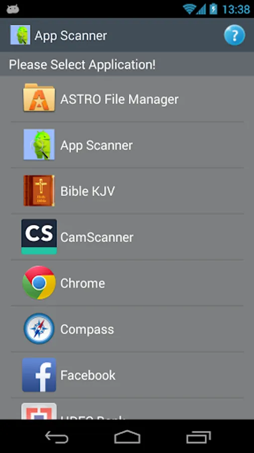 2. Launch App Scanner and select the application to analyze from list of installed application.